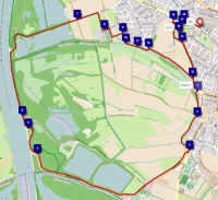 Die 10 km lange Runde startet am Evangelischen Gemeindezentrum in der Rohrhofer Straße. Von dort führt die Strecke über den neuen Fasaneriedamm zur Kollerfähre. Anschließend geht es auf die „Gegengerade“ direkt am Rhein entlang – ein Highlight mit wunderschönem Ausblick.